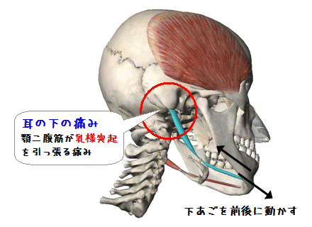 ・顎二腹筋が乳様突起を引っ張る痛み